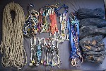 Abaixo parte do equipamento já separado (o de escalada, é claro). Clique para ampliar.